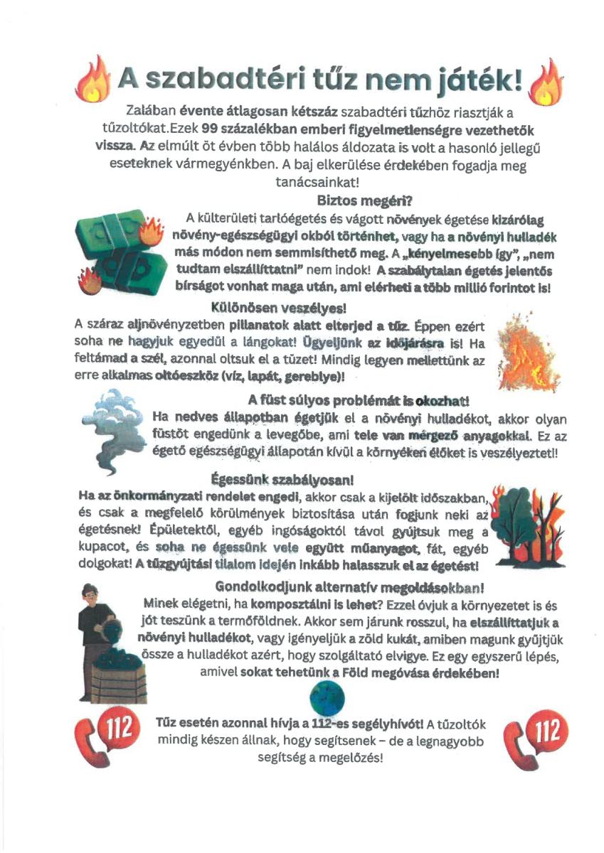 Preventív felhívás- szabadtéri tüzek